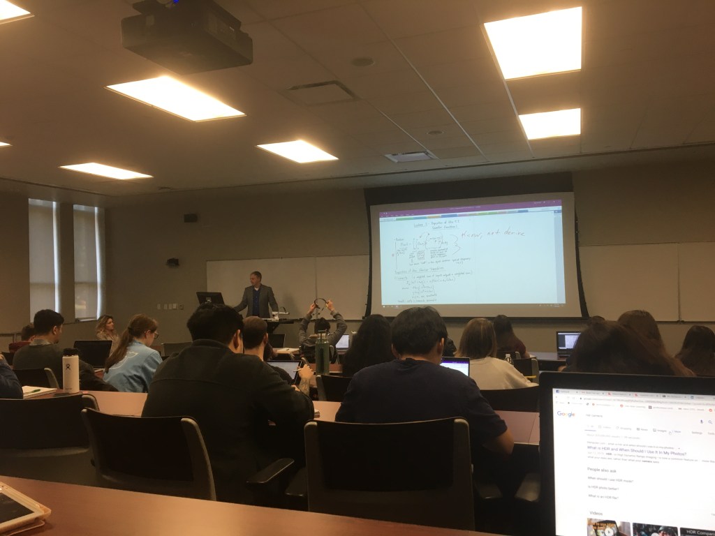 | 2020 Spring | BMEN 420 – Medical Imaging – Two sections; 140 students Instructor of Record 3 credit-hour, junior level required course with emphasis on applied signals and systems for medical imaging applications. Topics covered include theory, applications, and design of optical, acoustic, tomographic, and magnetic resonance imaging technologies. I was personally responsible for teaching content on spatial signals & systems, Fourier Transform, X-Ray physics & systems, ultrasound, and optical coherence tomography. As instructor of record, responsibilities include lecturing, quiz and exam design, making improvements to homework question sets and projects, and course management responsibilities, with advice and supervision provided by faculty member who designed course. |